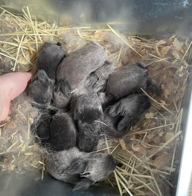 The kit on the left was chilled, showing the effect of temperature on color. Chilled kits become dark all over and will have dark tipped hairs as the fur grows in, until they shed it out again. The warm kit on the left shows the normal kit color of pure pink/white until the color starts coming in later.
