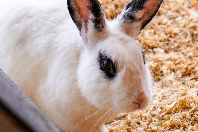 En English Spotting - The rabbit is white with colored spots. Example above: broken black.