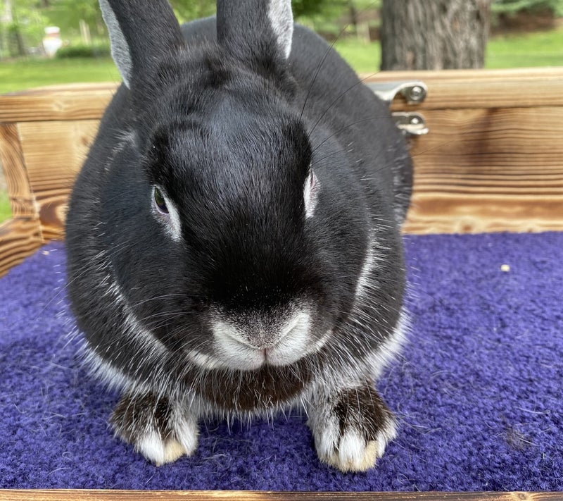 B: Black - The rabbit is black based, meaning the base color is black or blue. Example above: black based magpie harlequin